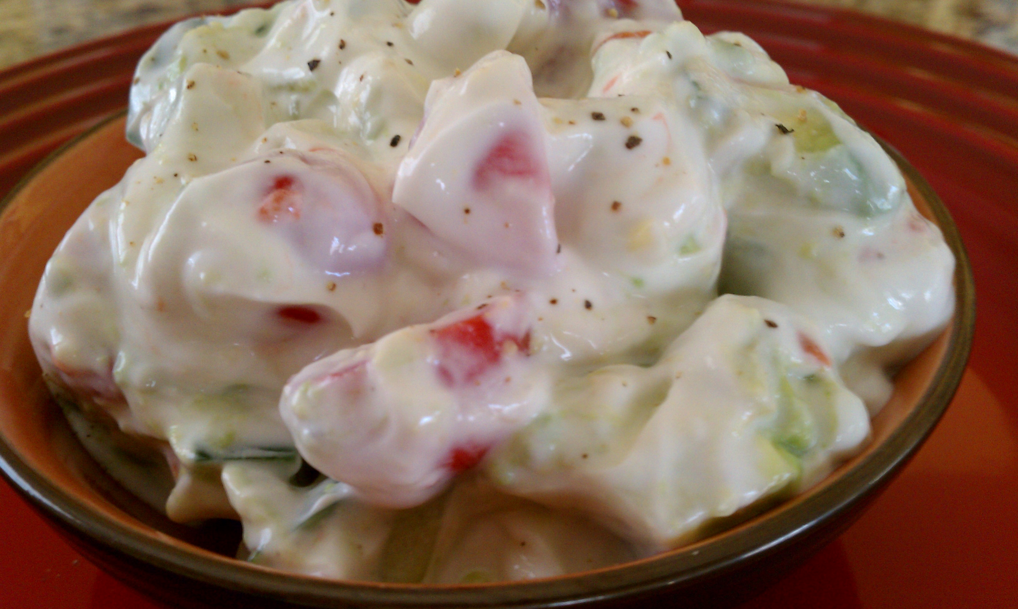 I’ve been on the Greek yogurt bandwagon for a while (Fage is my absolute favorite) and recently went from buying the kind with the sweetened fruit to getting the plain versions and mixing in my own cereal, fruit, etc.. I’m always hearing that Greek yogurt is the perfect substitute for sour cream and can be used in many savory ways, but I had yet to find a good use until seeing C&J Nutrition’s recipe for Cucumber Salad in Self Magazine.