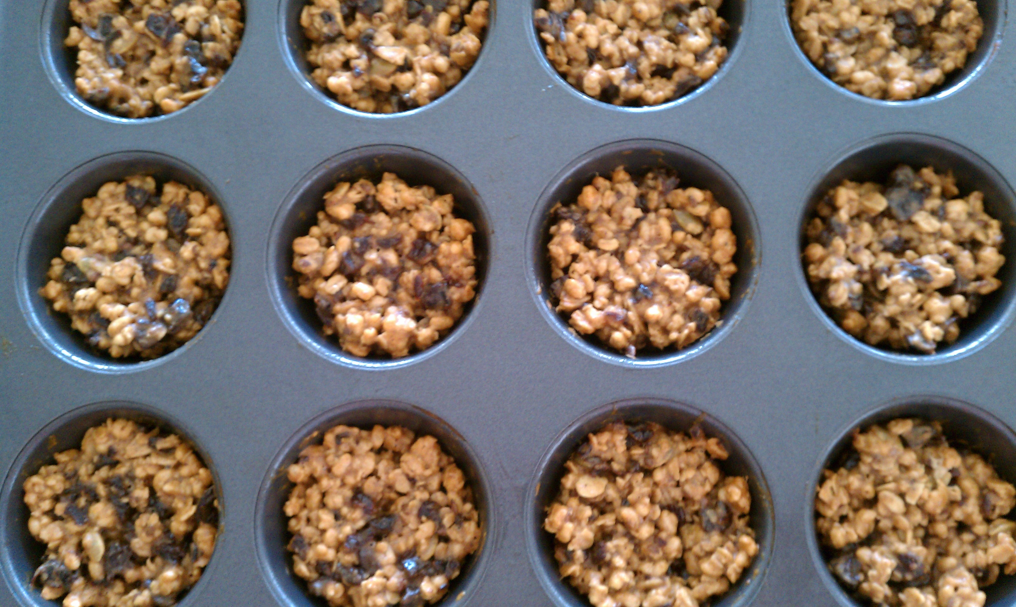 Stir in granola and dried cherries.  Divide mixture evenly among muffin cups (about 3/4 full).  Bake for 45 minutes.  Remove from oven and cool completely on a wire rack before removing clusters from pan.  Store in an airtight container.